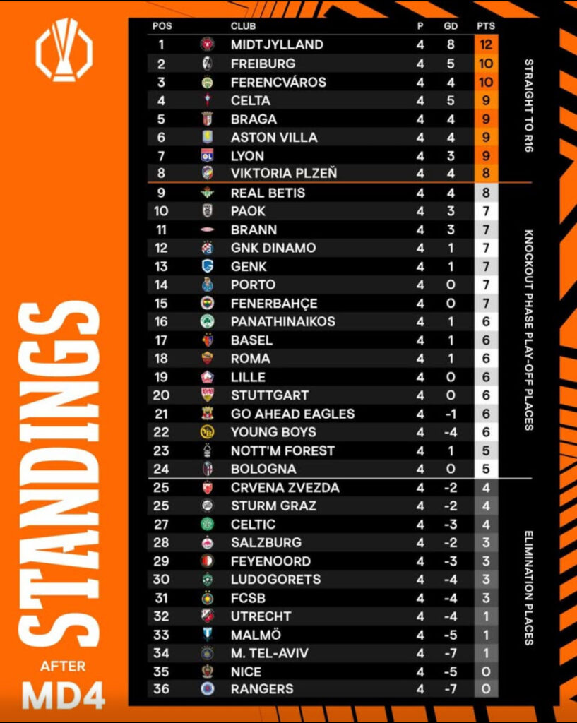 Avropa Liqasında 4-cü tutun oyunları keçirilib. Oyun gününün ilk doqquz qarşılaşmasında sürpriz baş verməyib. İngiltərə çempionatında yaxşı təsir bağışlamayan “Nottinqem Forest” Qratsda “Şturm”un müqavimətini qısa bilməyib. “Srvena Zvezda” isə Belqradda “Lill”i məğlub edib. “Midyulland” dalbadal 4-cü qələbəsini qazanaraq turnir cədvəlinin birinci pilləsində möhkəmləndi.