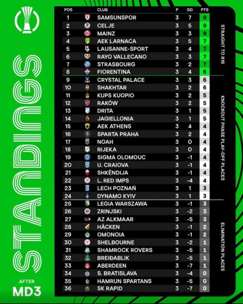 Konfrans Liqasında 3-cü tur başa çatıb. “Samsunspor”  gözlənildiyi kimi Maltanın “Hamrun Spartans” klubu üzərində asan qələbə qazandı. Hərəyə bir qol və bir məhsuldar ötürmə verən Əmrə Kılınc və Karlo Holse qələbədə önəmli pay sahibi oldular. Samsunlular 3 turdan sonra 100 faizlik göstərici ilə liderdir. Arda Turanın çalkışdırdığı “Şaxtyor” İslandiya “Breydablik”i üzərində qələbə qazanaraq pley-off şansını artırdı. Kiyev “Dinamo”su turnirdə ilk qələbəsini qazandı.