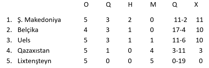 Belçika – Qazaxıstan 6:0