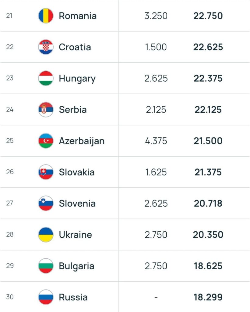 “Köhlən atlar”ın əzmkar qələbəsi Azərbaycan futboluna əlavə 0,5 xal gətirdi. Bununla da, Azərbaycan UEFA cədvəlində Slovakiyanı geridə qoyaraq reytinqdə irəlilədi.