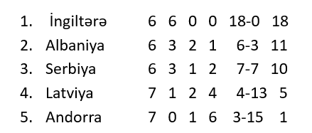 İngiltərə də asan qələbə ilə mundiala vəsiqəni təmin etmiş oldu. İngilislər Avropa seçmələrindən DÇ-yə çıxan ilk komanda adını qazandı.